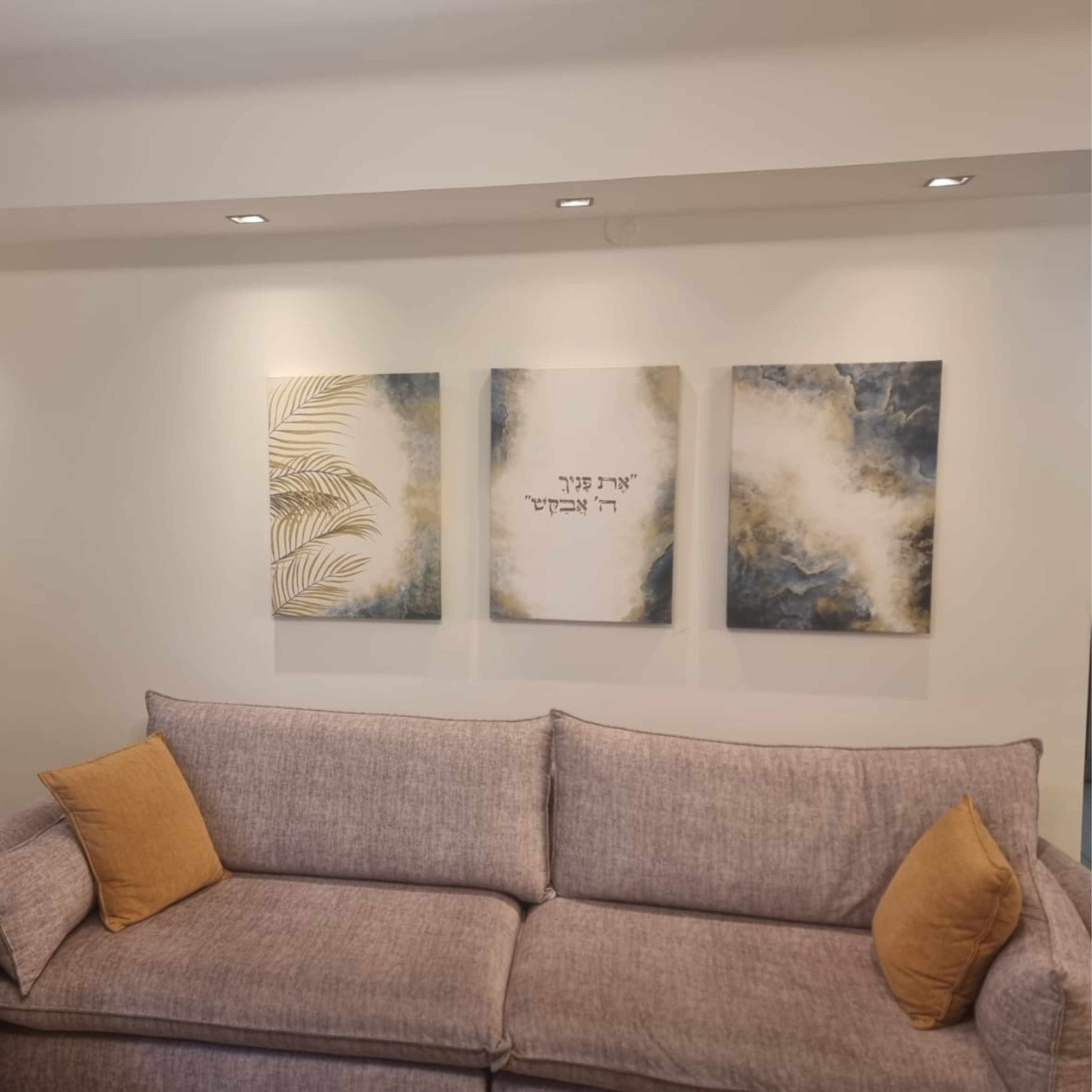 ממליצה בחום על "מכחול וקודש", יצא איכותי ברמה גבוהה, מאיר את הבית ,כל מי שנכנס לא יכול להוריד את העיניים מהיופי הזה!! בנוסף משלוח מהיר מאוד (אנחנו גרים בשומרון וזה לא סטנדרטי), הגיע ארוז בצורה מוקפדת, נשמר מאוד, ניכר שהייתה מחשבה רבה בכל פרט!! וכמובן בתור ערך מוסף הם שירותיים ונענים במהירות ובמסירות לכל בקשה!! יהי רצון שיתקיים בכם "וכל אשר יעשה יצליח"!