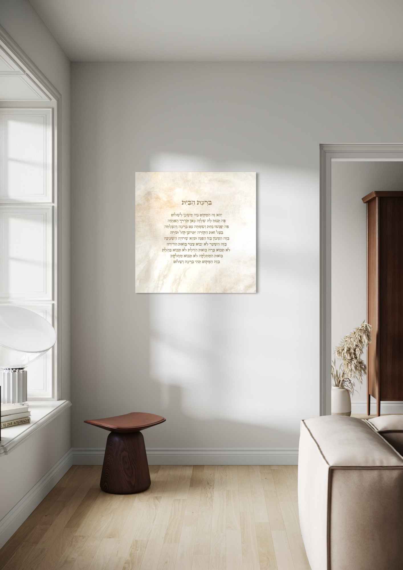 יצירת ברכת הבית בעיצוב אבסטרקטי נקי בגווני לבן ושמנת, המעניקים לחלל תחושת רוגע, איזון ואור טבעי.