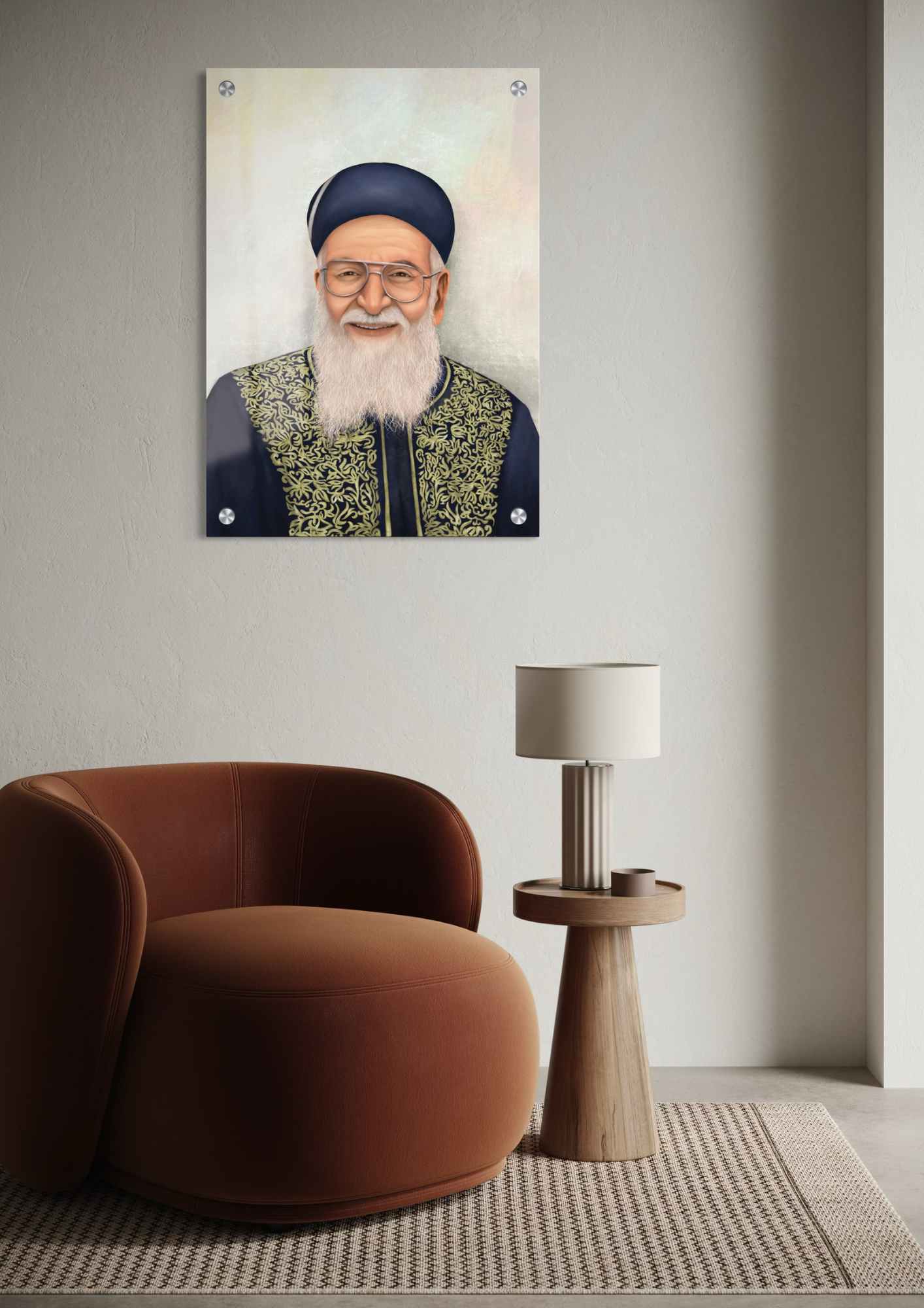 ציור דיוקן של הרב מרדכי אליהו זצ״ל המכונה גם כאביהם של ישראל שהיה דיין בבית הדין הרבני.