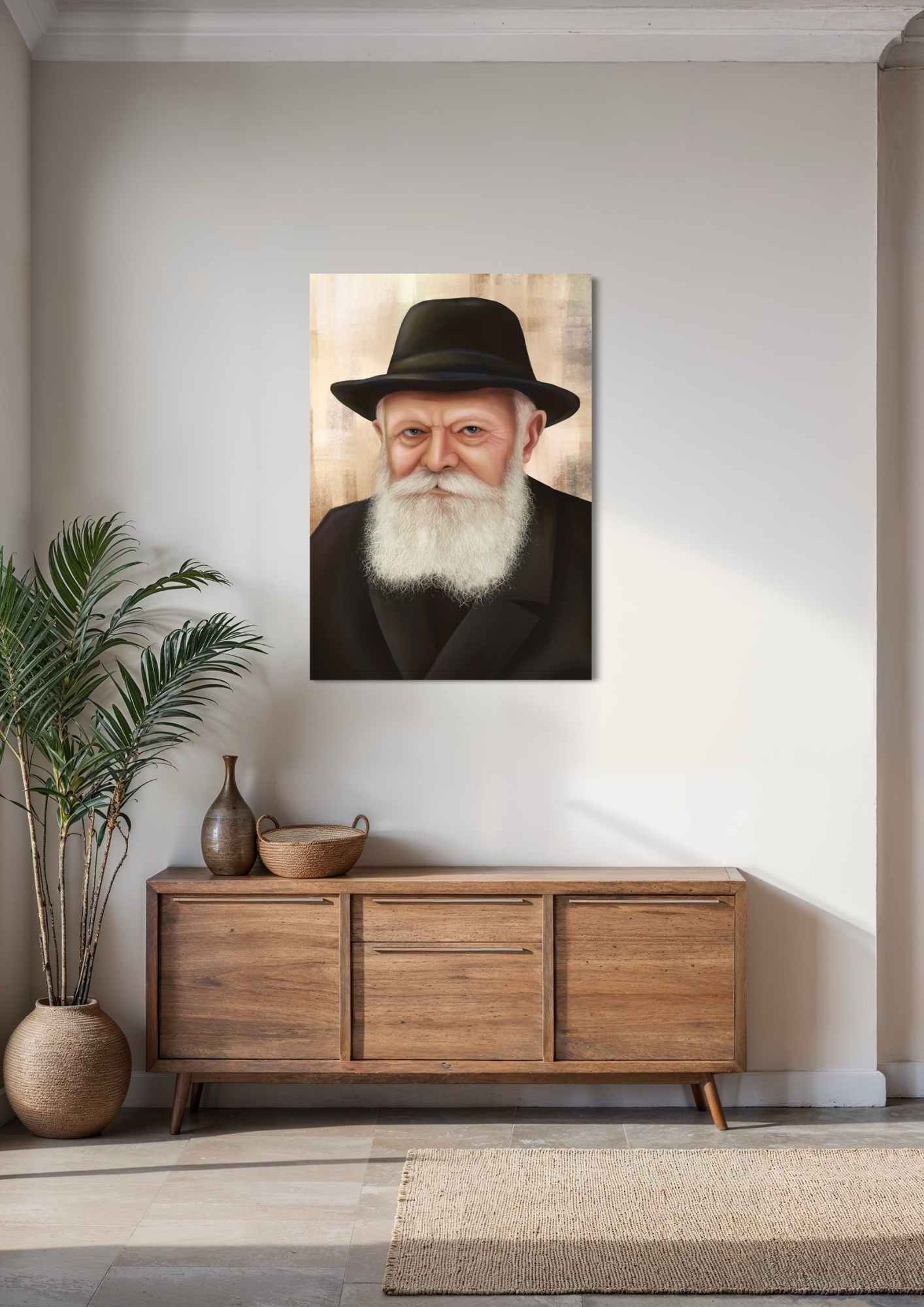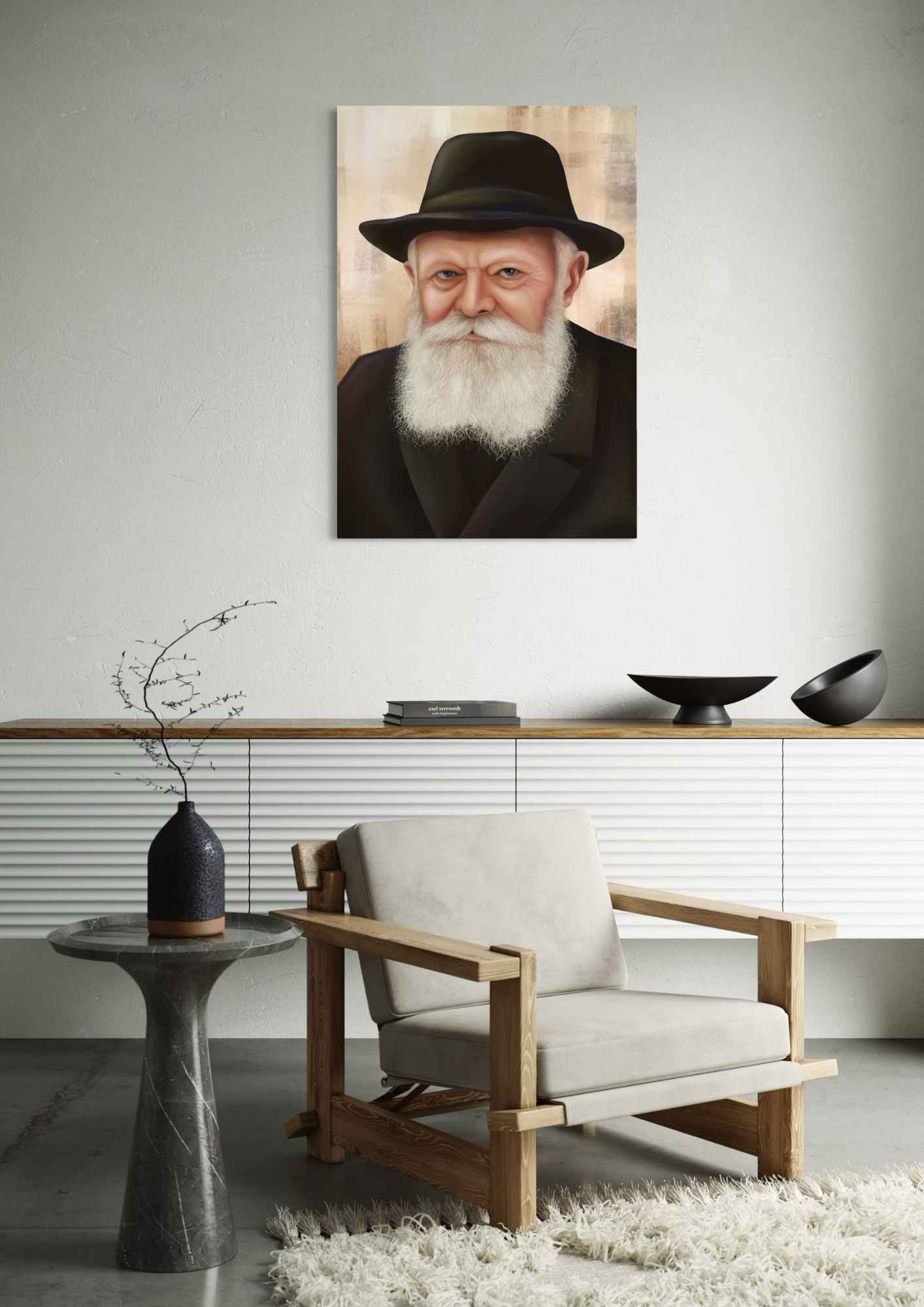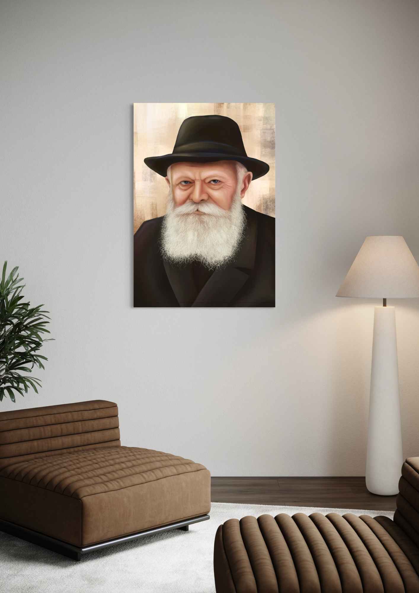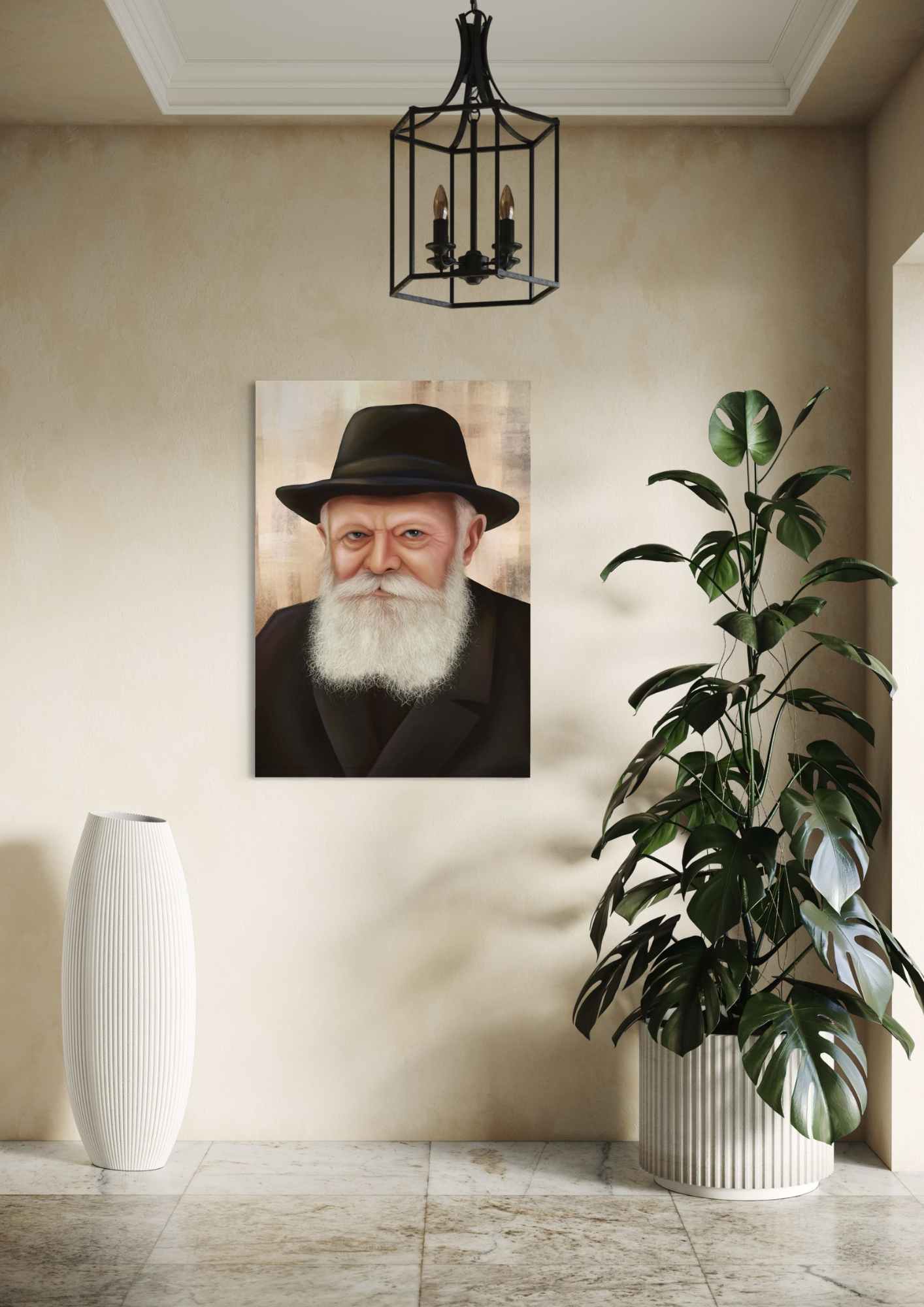 ציור דיוקן מרגש ומלא עוצמה של הרבי מליובאוויטש דמות המאירה חכמה, אמונה ואהבה ללא גבול.