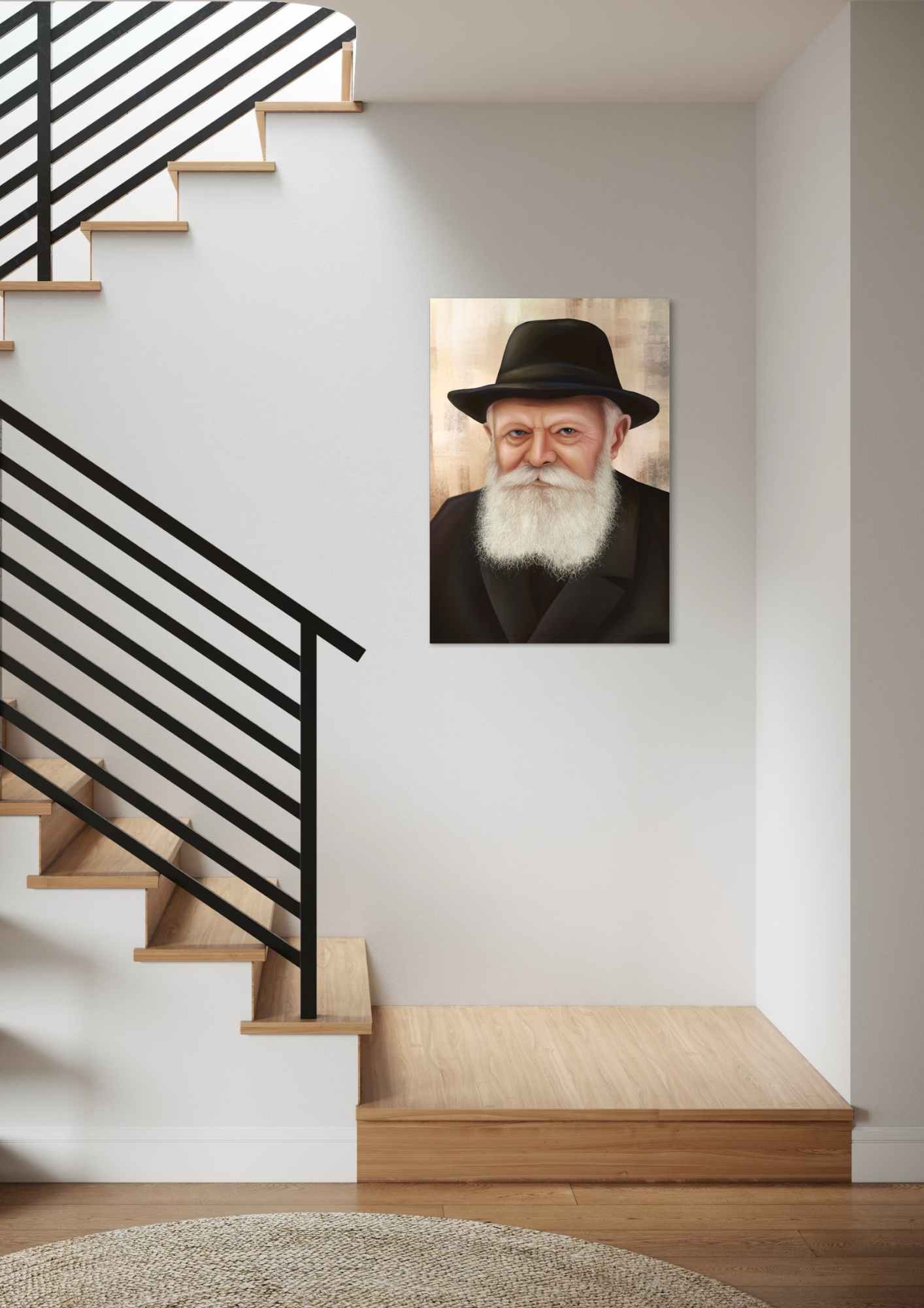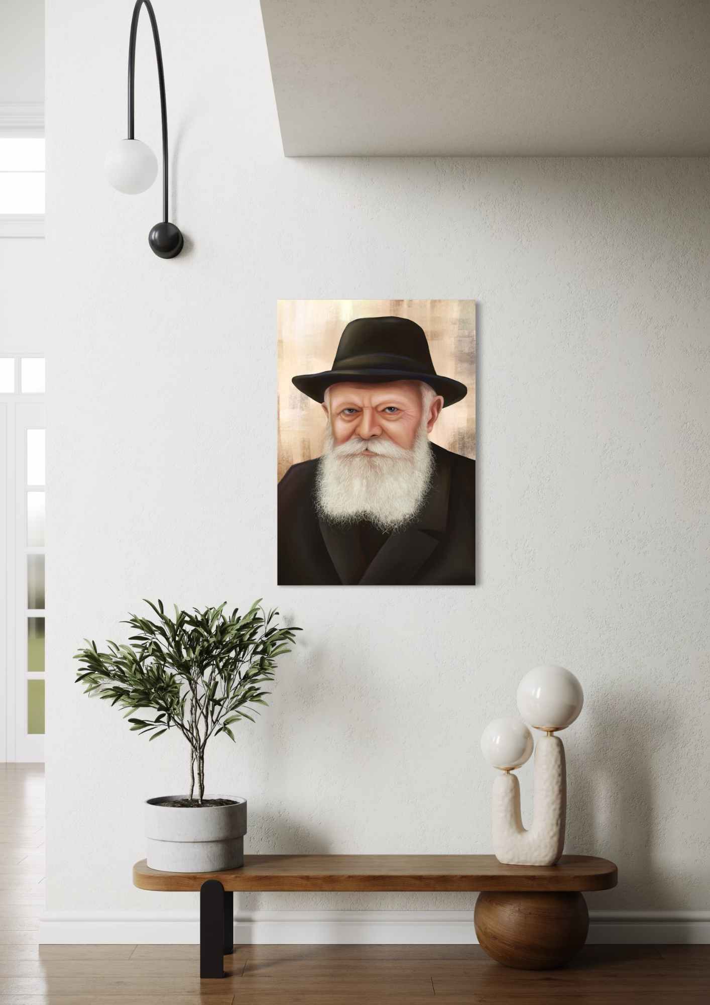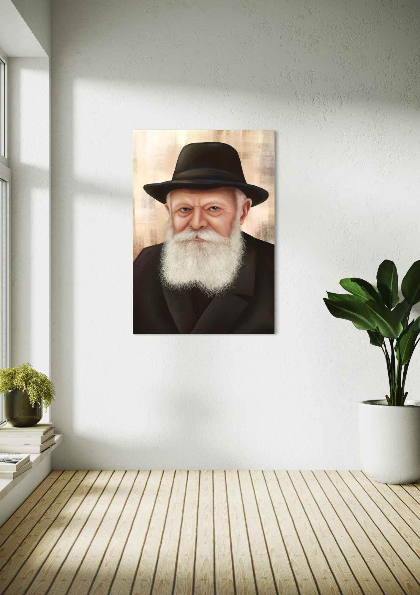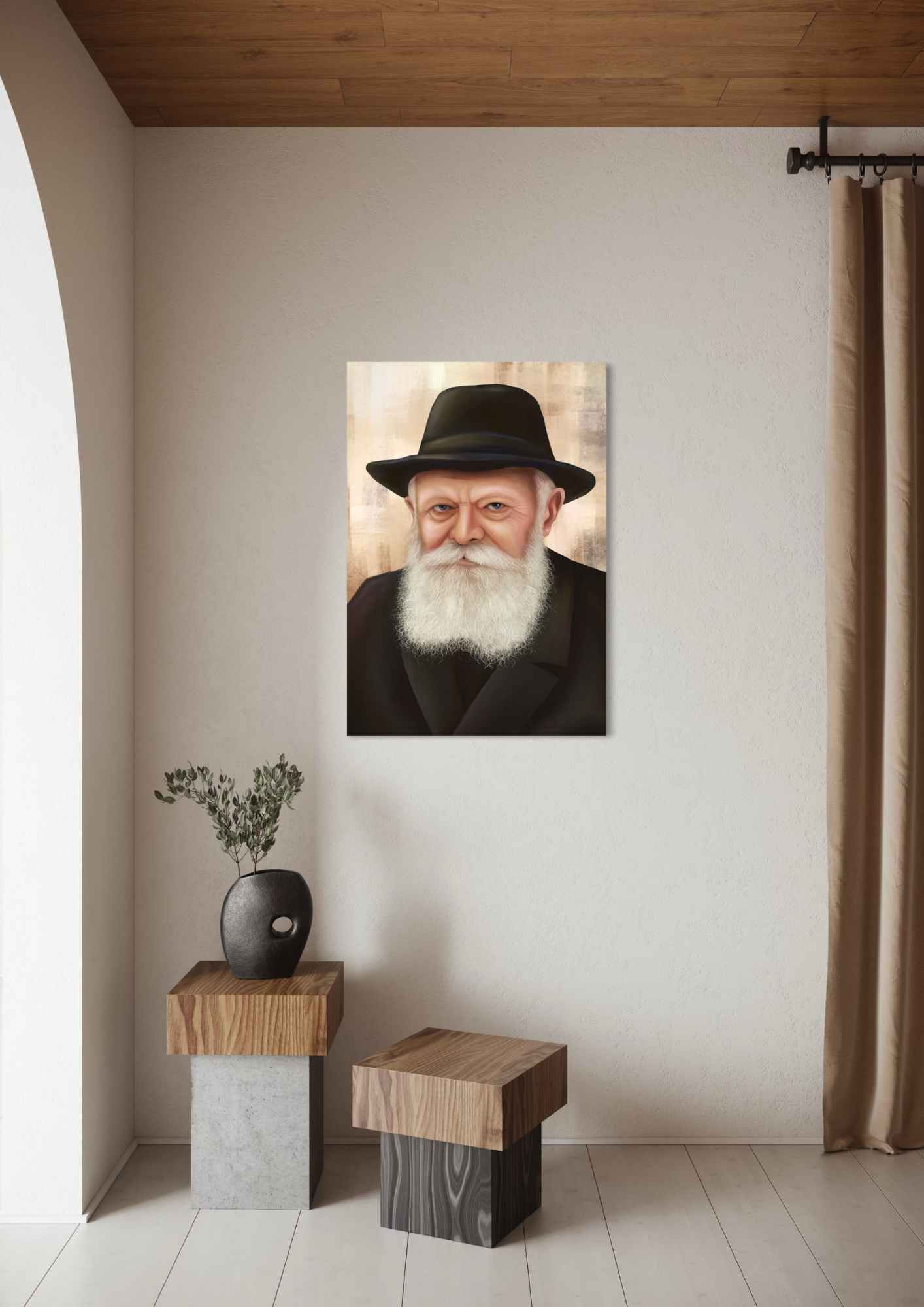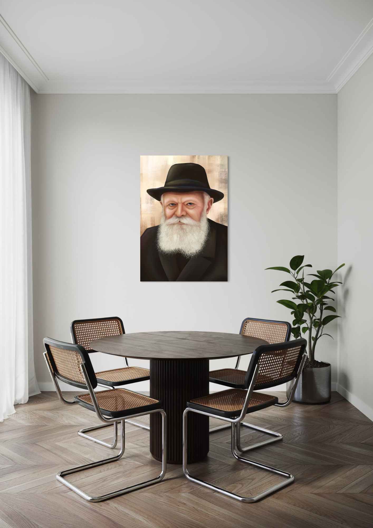 ציור דיוקן מרגש ומלא עוצמה של הרבי מליובאוויטש דמות המאירה חכמה, אמונה ואהבה ללא גבול.